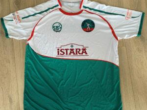 T-shirt blanc et vert à l’effigie de l’association Denek Bat. Coupe droite, décontractée et confortable. Finitions haut de gamme avec doubles coutures. Portez fièrement nos valeurs.
